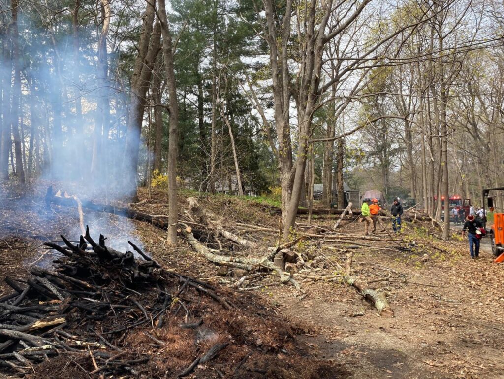 On Monday, April 25, at approximately 10:30 a.m., police and firefighters responded to a report of an out-of-control brush fire at 10 Mill Road, where a brush burning permit had been activated earlier in the morning.