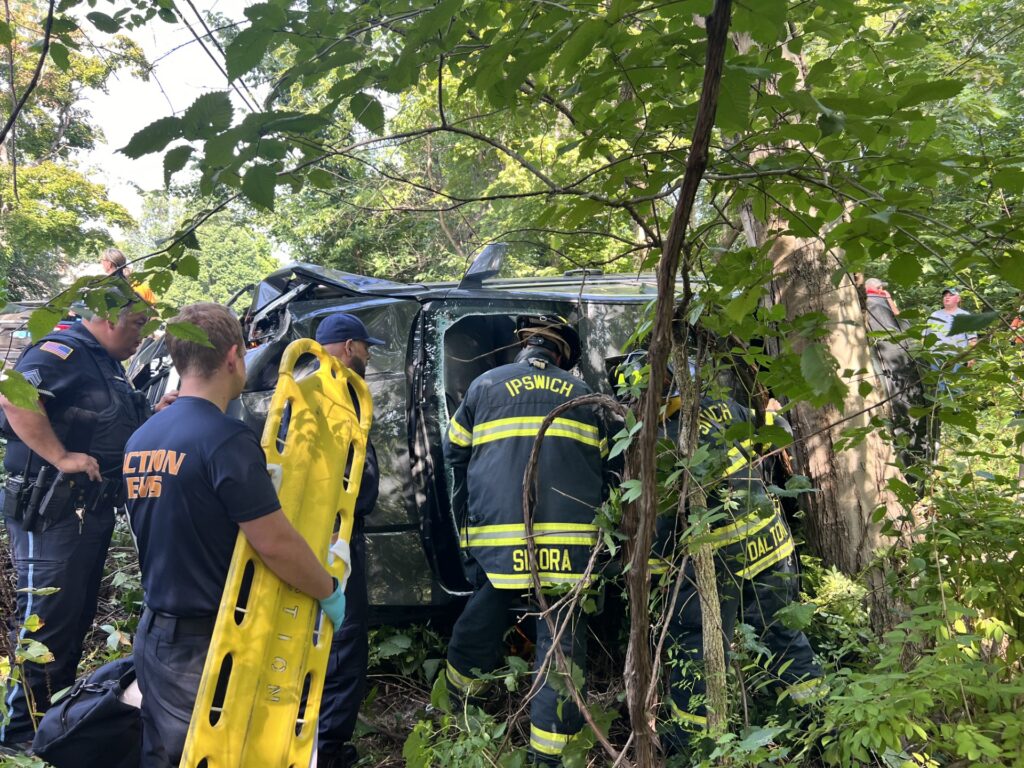 “It was a well-executed rescue conducted in difficult circumstances,” said Ipswich Fire Chief Paul Parisi. “A compromised electrical pole, trees and brush that needed to be cut out of the way, and low staffing all contribute to the challenges of this extrication. It’s a real credit to our members and the time they spend training in order to stay proficient with their tools and their skills.”