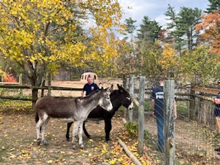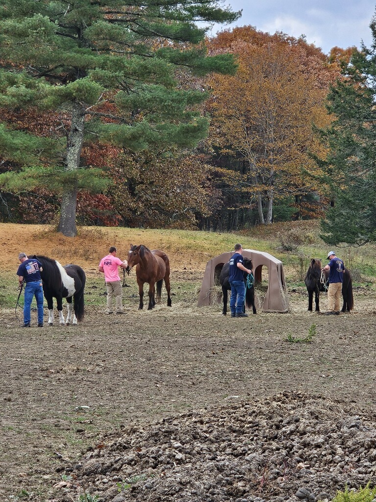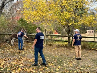Some people only picture the fire department responding to fires. Well, we do a lot more than that! In a town like Ipswich, we encounter horses quite a bit, from people falling off, to stable fires, to having a horse trailer in a crash. Recently, Samantha Stevens from Cedar Tree Stables on Topsfield Road spent some time with our members, giving us some excellent training on how to handle the horses and help keep them safe should we encounter them in any type of emergency. We would like to thank Samantha and her staff for their hospitality, their wisdom, and their patience! Although we did some “horsing around”, we learned a lot about being around horses. Thank you!
