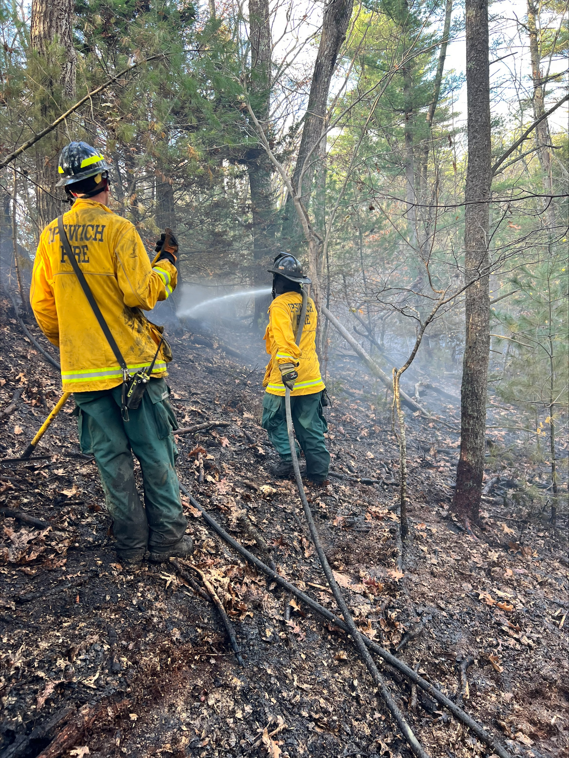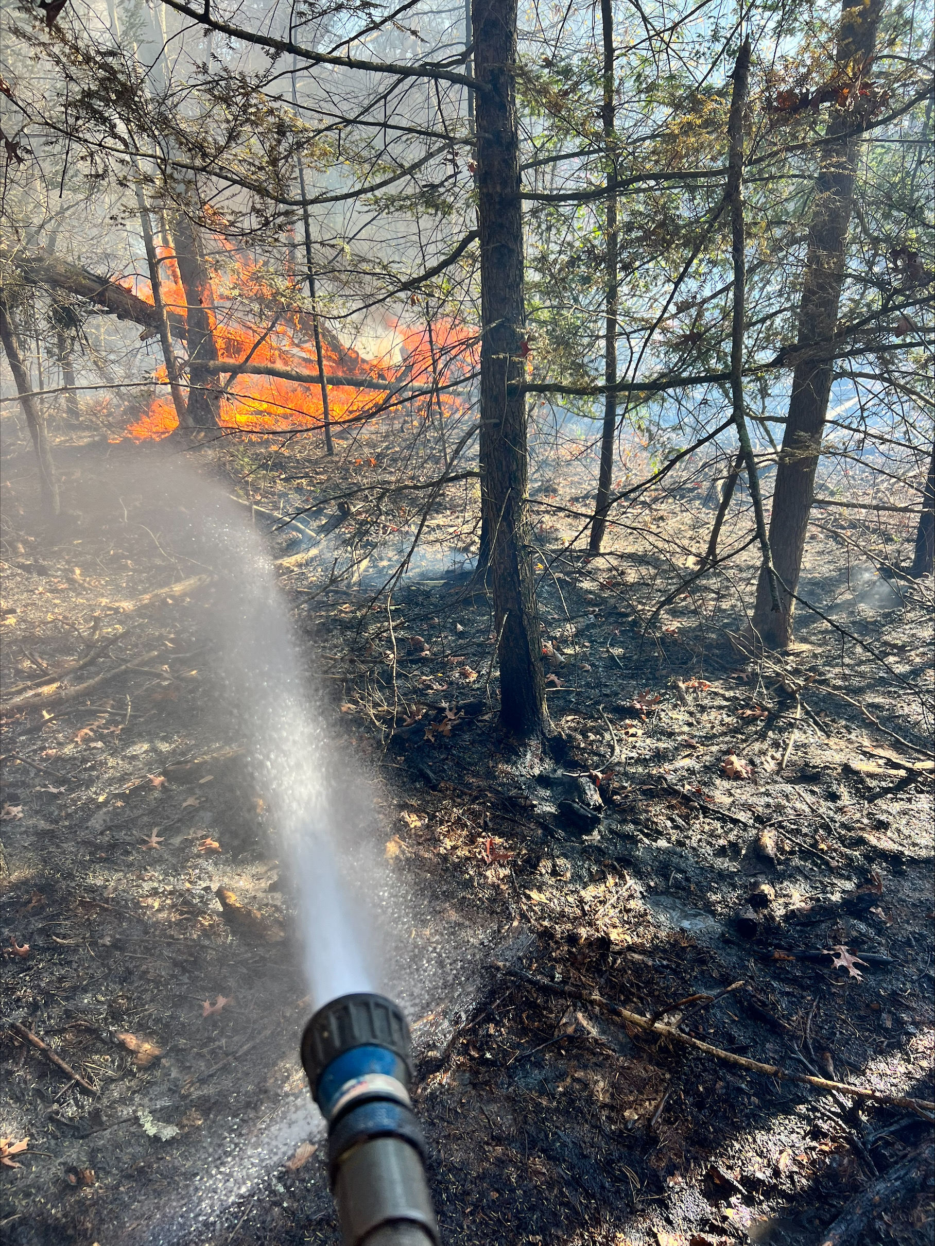 Four firefighters used the Department’s UTV and brushfire equipment for several hours on the blaze, which burned 10 acres on the Rowley line. The crew drafted water from a small pond in the fire area, and used forestry lines and hand tools to knock the flames down.